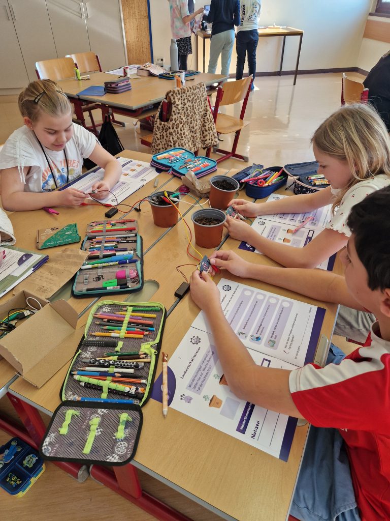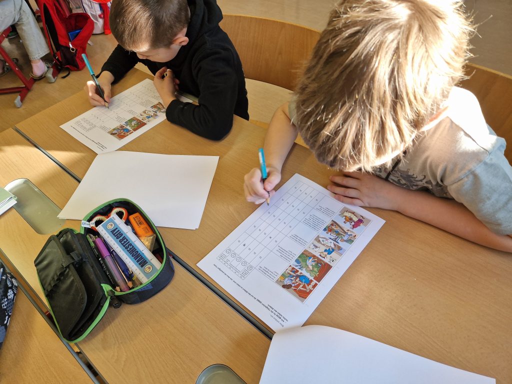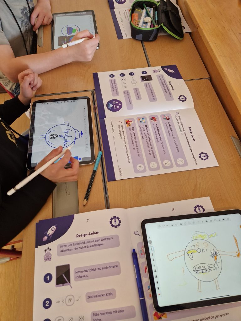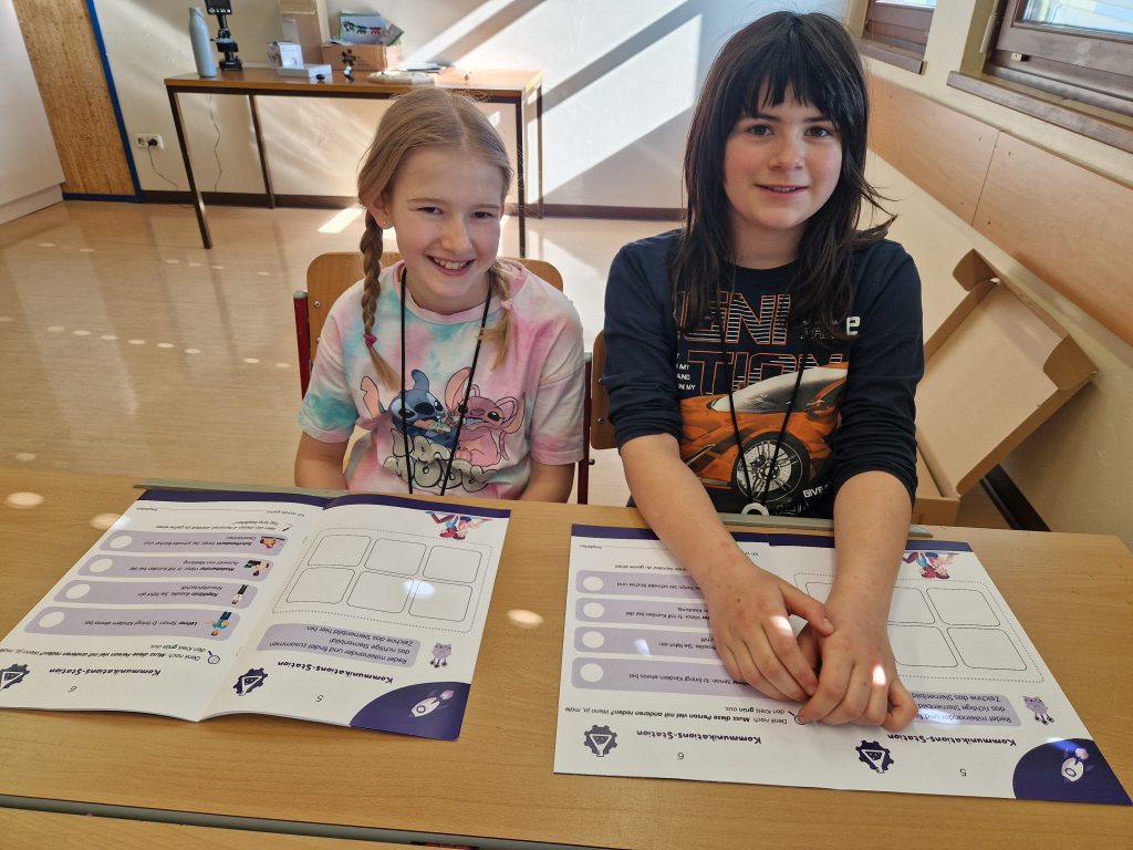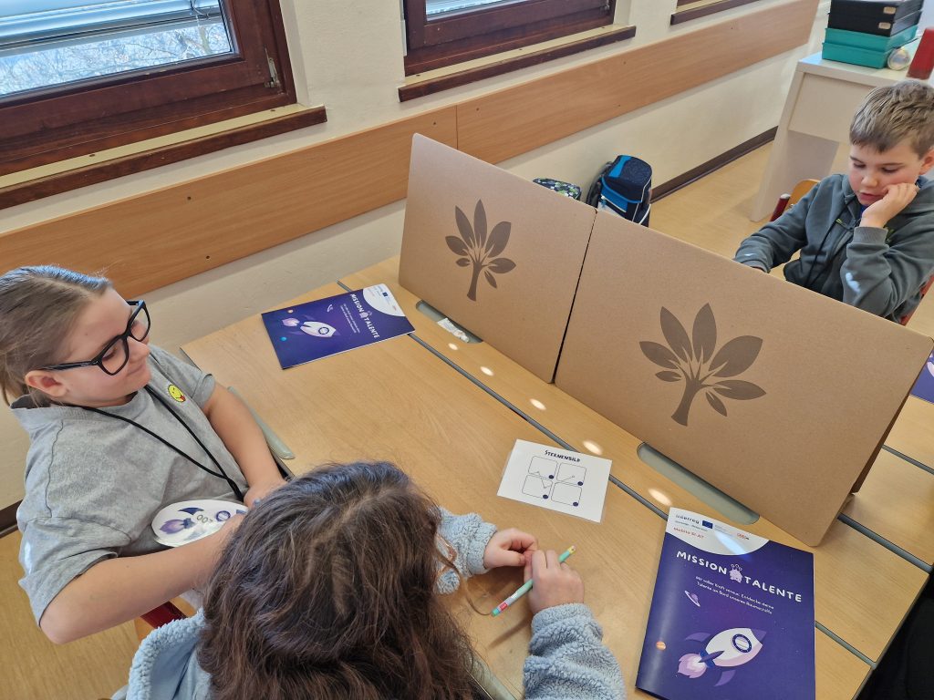 Die 4. Klasse erwartete für den “Workshop Talente” drei Frauen und einen Mann. Es gab 4 Stationen, wo wir unsere Talente herausfinden konnten. Bei der 1. Station hat man Berufe, die mit Mikroskopen arbeiten, kennenlernen können. Die 2. Station hatte mit der Kommunikation zu tun. Wir saßen uns gegenüber, und der eine sagte uns was an. Bei der 3. Station ging es um die Landwirtschaft. Und bei der letzten Station durften wir mit einem Stift auf einem Tablet zeichnen, das war nämlich die Designstation. Und zum Schluss haben wir eine Urkunde bekommen. Es hat allen sehr viel Spaß gemacht.